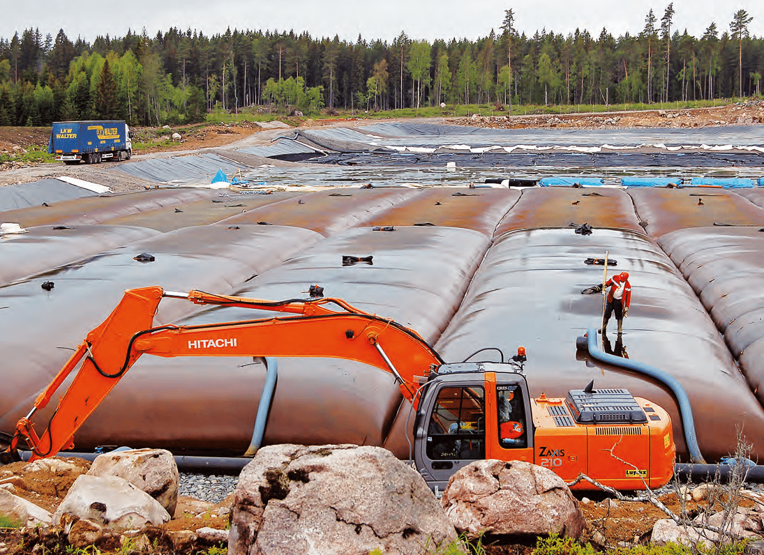 255 000 m3 fibersediment muddrades och pumpades in i geotuber, som deponerades lokalt.